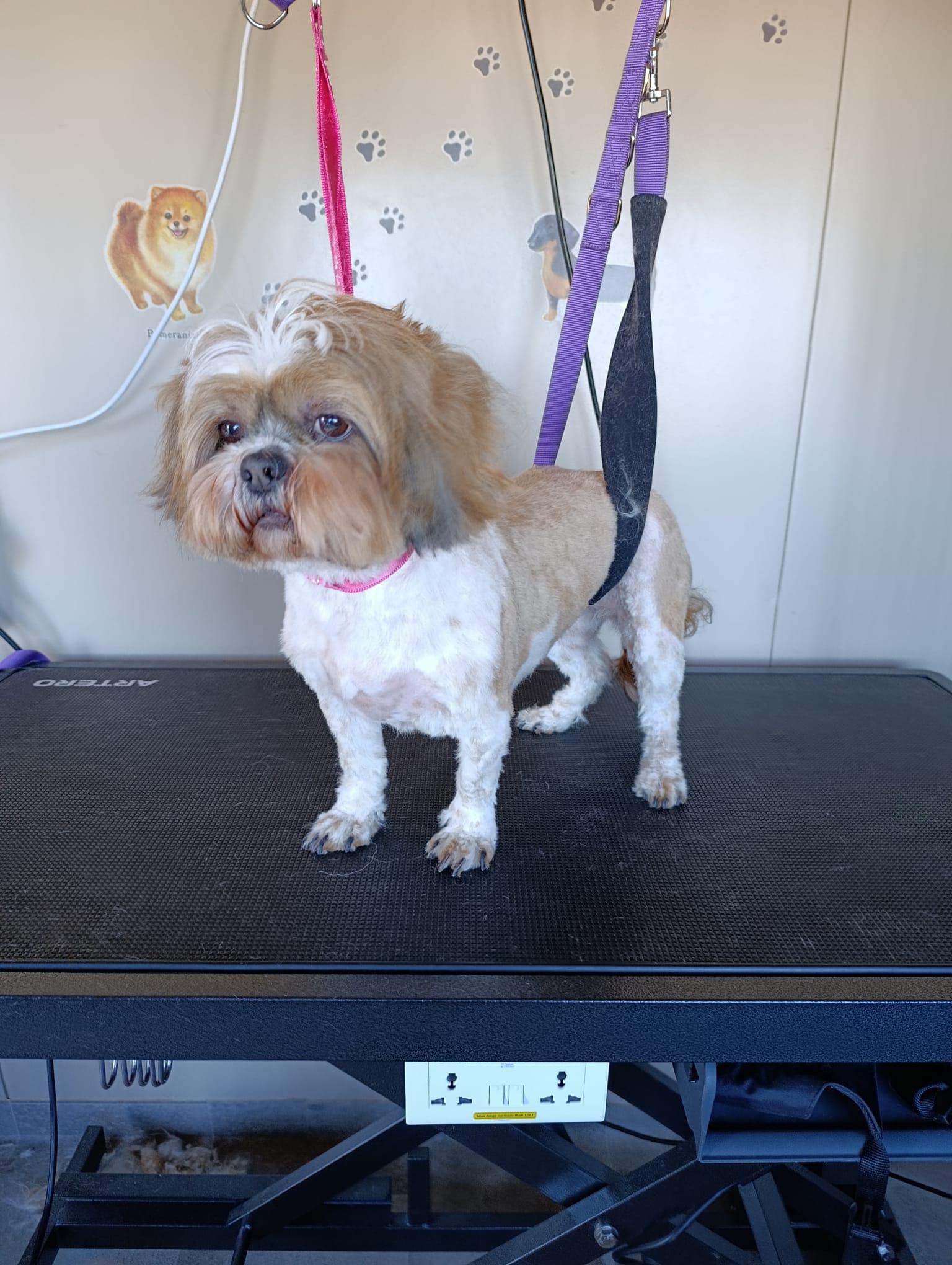 Nous réalisons tous types de prestations : bain, brushing, coupe ciseaux, tonte, démêlage, nettoyage des oreilles, coupe des griffes… Chaque séance est adaptée à la race, au type de poil et aux besoins spécifiques de l’animal. Notre priorité : le respect de son rythme et de son confort.